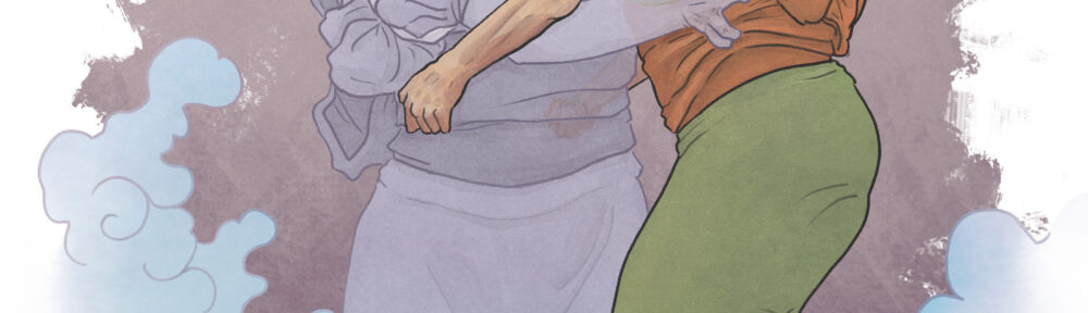 No sooner had she spoken than she leapt forward. The wife said, “I’m ready!” and met her challenge. As they wrestled, pushing and shoving, Saemon-no-suke returned, and the ghost vanished into thin air.