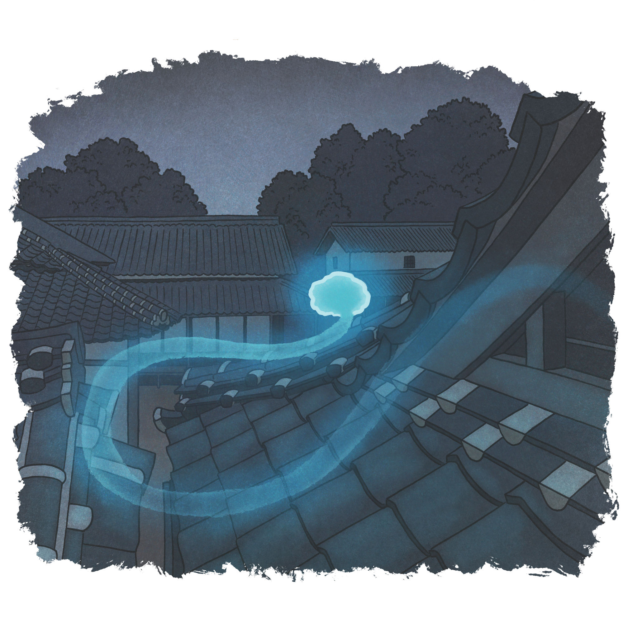 Similarly, in the fifth year of Bunka (1808), a constable named Matsuyama Yasaburō died on illness on duty at Nijō Castle, but after Yokota returned to Edo, people told him that when Yasaburō died of illness, the Edo main gate guard reported that Yasaburō had returned, and just at that moment a hitodama entered his house and was seen floating up around the roof ridge.