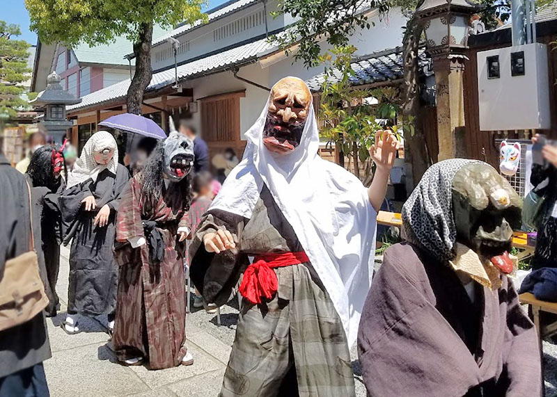 Last weekend saw the return of the Mononoke Ichi (モノノケ市) yokai flea market in Kyoto. Normally, this event takes place several times per year, with a spring flea market, an autumn yokai parade, and several smaller events at various temples and other locations. However, due to coronavirus, the festival has been on hold since 2019. This was the first Mononoke Ichi in over 2 years. This time, the event was stretched over two days (April 16-17) in order to reduce crowding.
