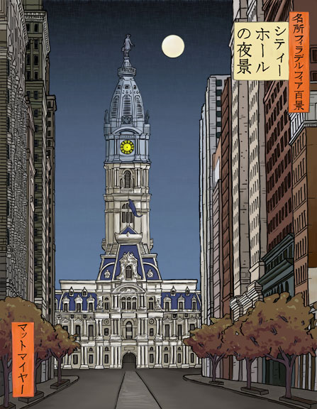 Well, despite being sick for 6 out of my 10 days vacation, I had a pretty good Golden Week. I was able to fix my Tablet PC finally and get some painting done. So as you saw, I finished my Tojimbo painting. I also went back and retouched a couple other paintings, making a couple fairly significant changes. I updated the Nagoya castle painting, as it had some problems that had been driving me crazy ever since I saw it printed out, and I also made a few big changes to the Mikuni Ryokan painting, which also had been bothering me every time I looked at it. Here’s the updated Mikuni painting: